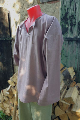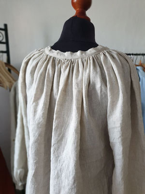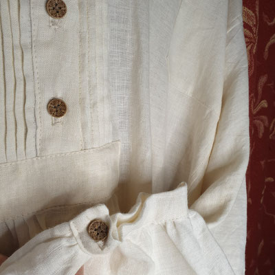 Das Hemd ist mit Kappnähten angefertigt und hat keine Schulternähte.